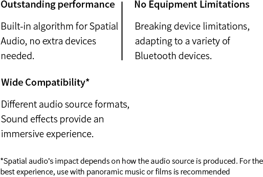 Spatial sound releases immersive, expansive audio for a lifelike experience, like having a private cinema or concert hall in your ears.