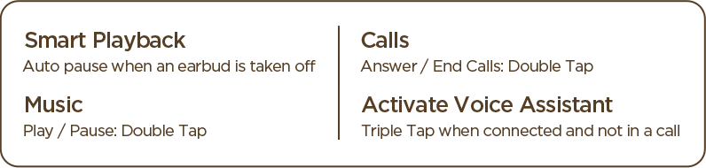 The built-in sensor detects the wearing status and auto-pauses when the earbud is taken off.